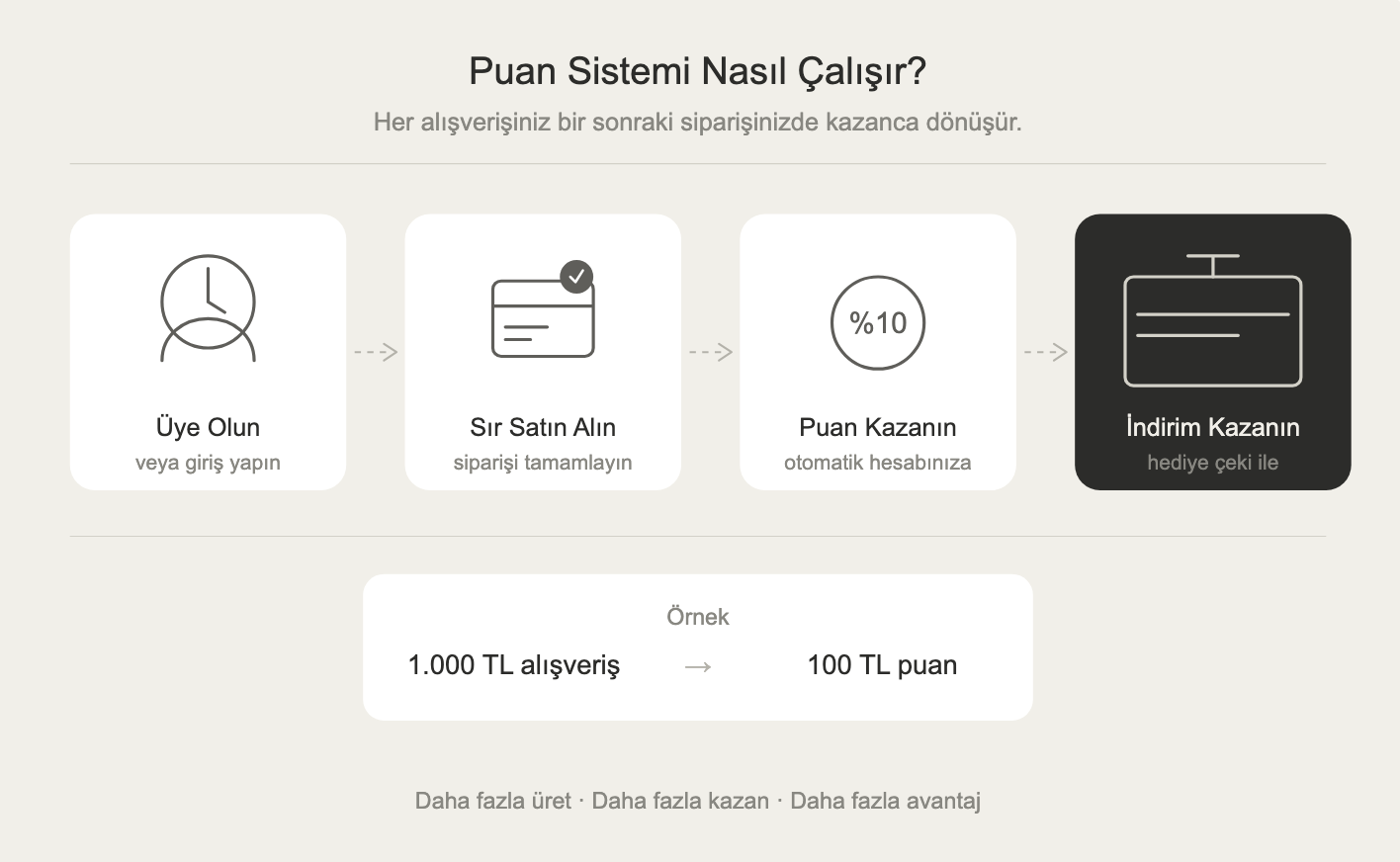 Artık yaptığınız her sır alışverişi, bir sonraki siparişinizde kullanabileceğiniz kazanca dönüşür.