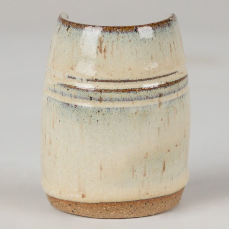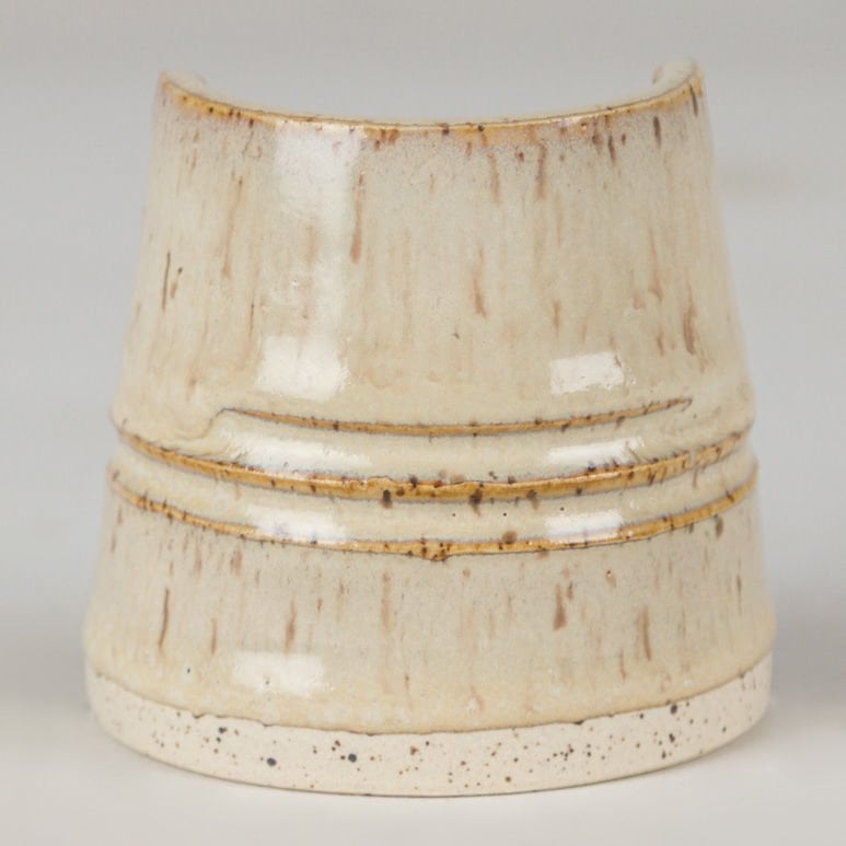 Cone 10 Redüksiyon 1305°C (ikinci görsel): Krem rengi korunur, kahverengi alt tonlar koyulaşır.