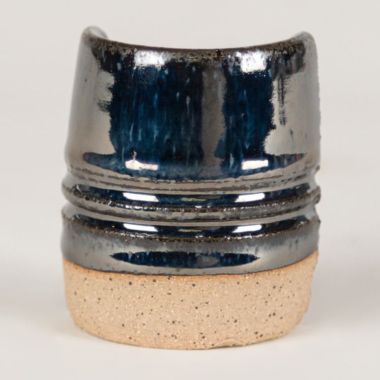 Cone 6 Oksidasyon 1222°C (ilk görsel): Mirror Black, yüksek yansıtıcılığa sahip, metalik siyah parlak bir yüzey oluşturur. Bazı dikey yüzeylerde ve dokulu alanların çevresinde hafif mat etkiler görülebilir; diğer tüm uygulamalarda siyah, metalik ayna etkisi oluşur.