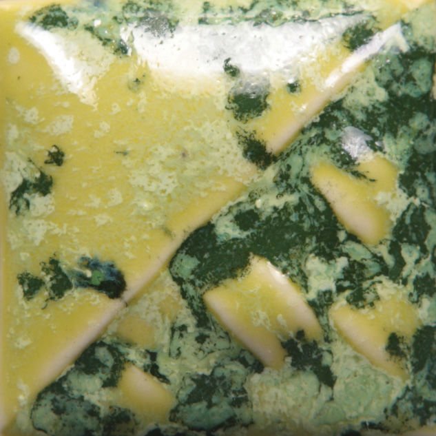 Cone 6 Oksidasyon (büyük görsel): Lime Shower, koyu yeşil ve beyaz kristaller içeren canlı chartreuse parlak sır oluşturmak için formüle edilmiştir. İnce katlar, baz sırda yarı saydam bir yüzey ve daha az kristal sağlar. Daha fazla kristal doygunluğu ve opak yeşil yüzey için üç veya daha fazla kat uygulayın. Cone 5’te bu sır, dokulu yüzeylerde az kırılma ile mat sepya yüzey oluşturur.