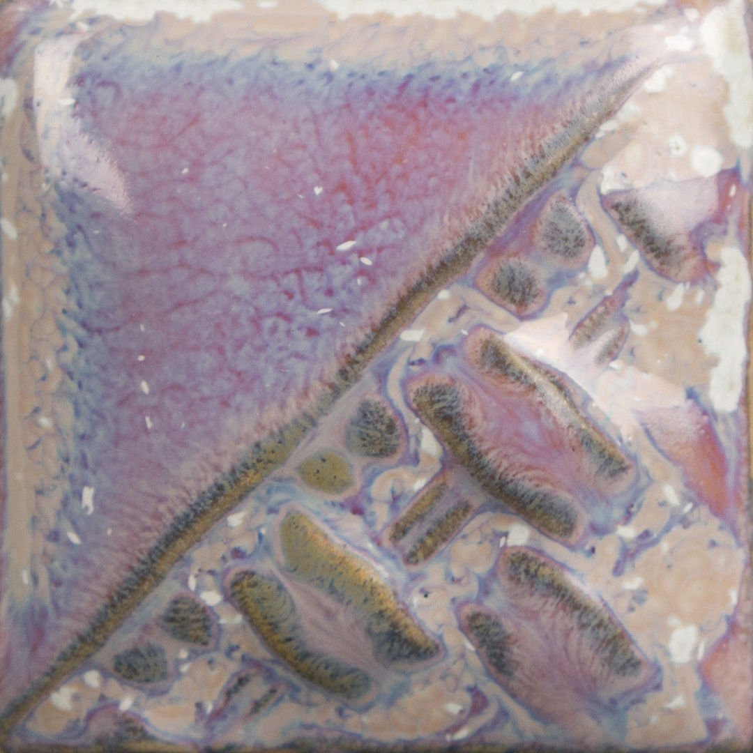 Cone 10 Redüksiyon 1305°C (ikinci görsel): Sır, parlak, değişken lavanta-mor tonlarına döner ve beyaz mikro kristalleşme gösterir. Dokulu yüzeylerde mavi/gri şekilde kırılır. Hareketlilik artar.