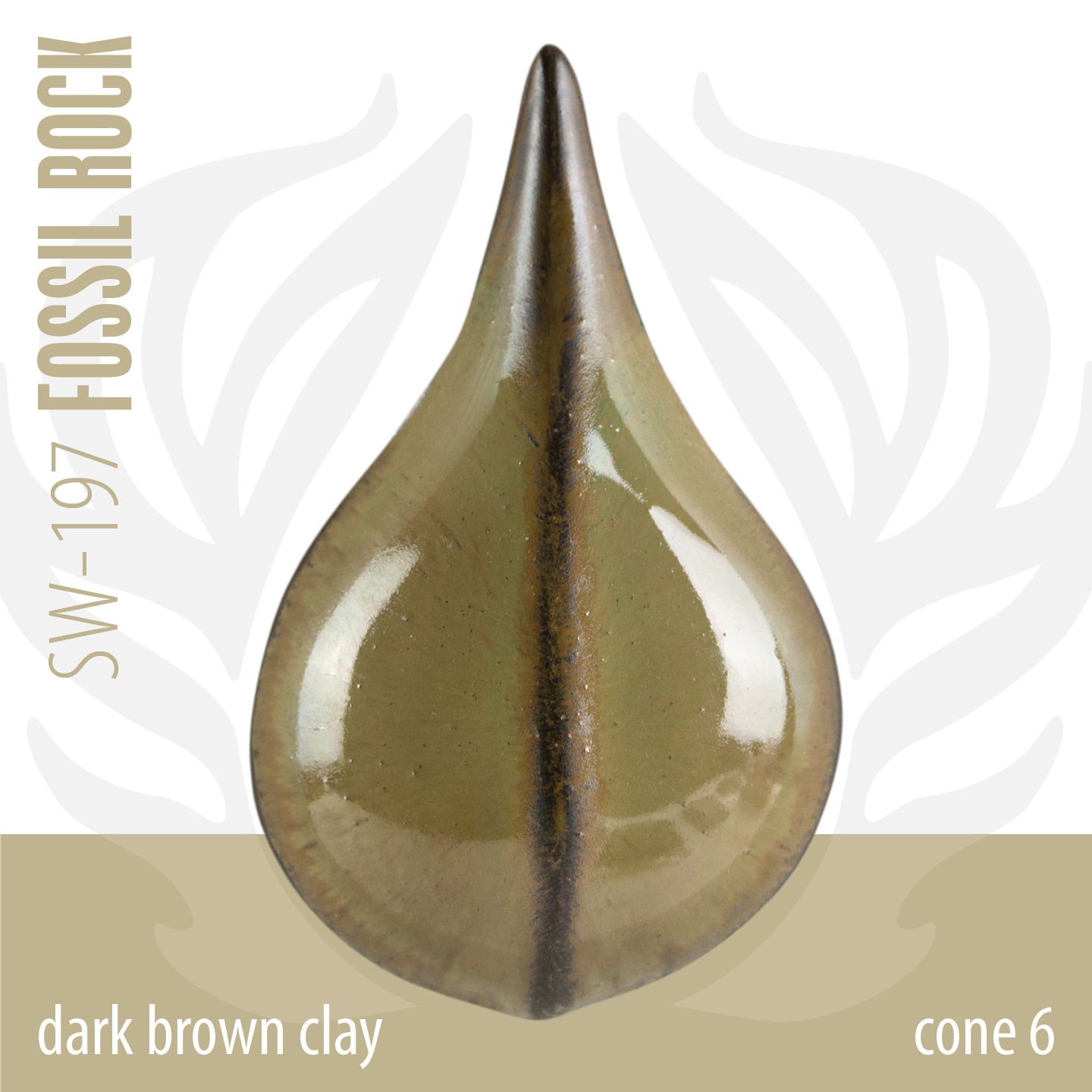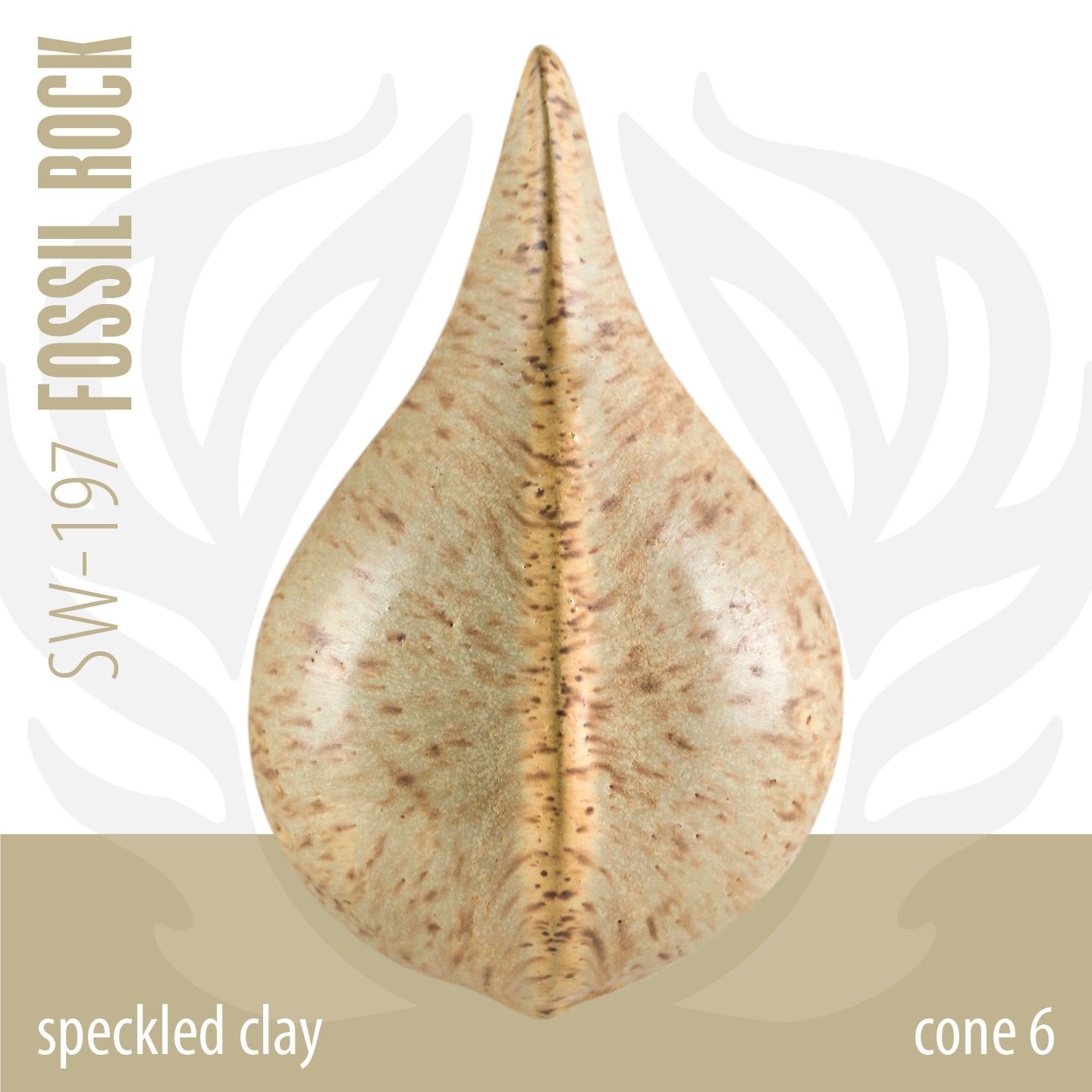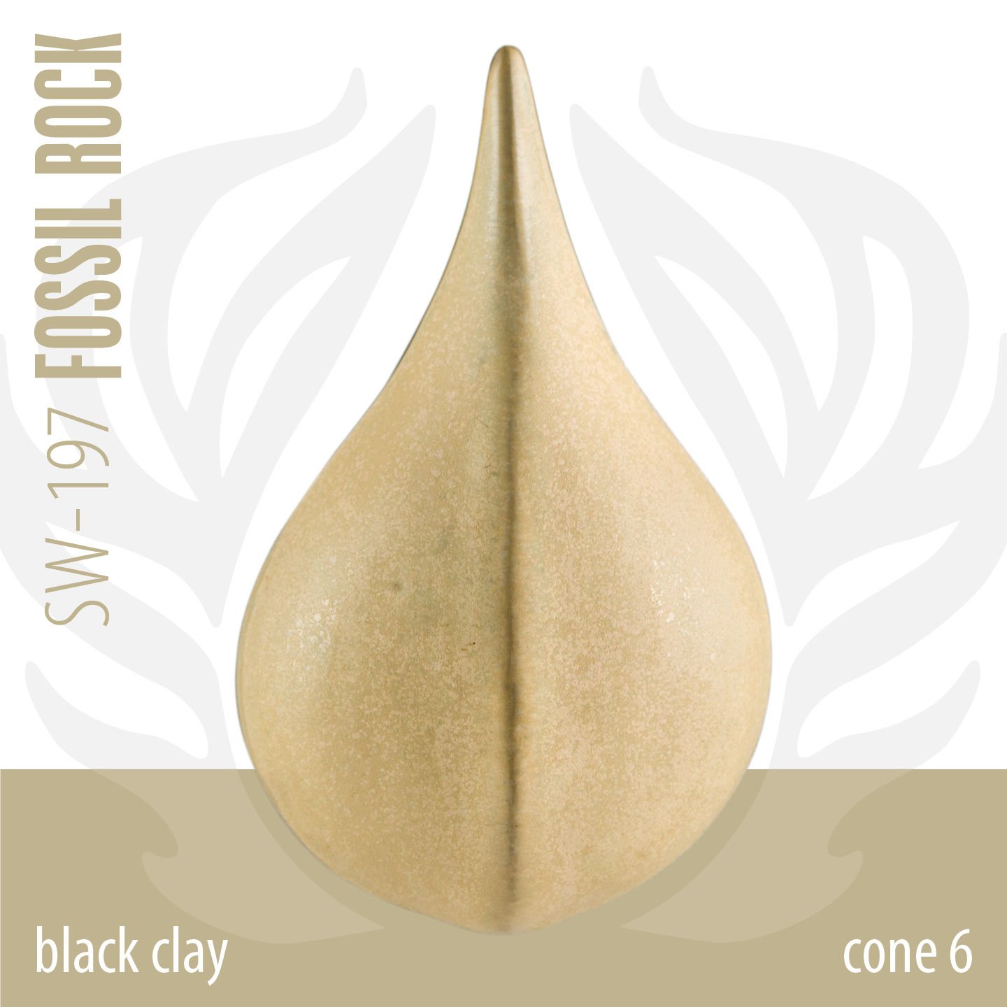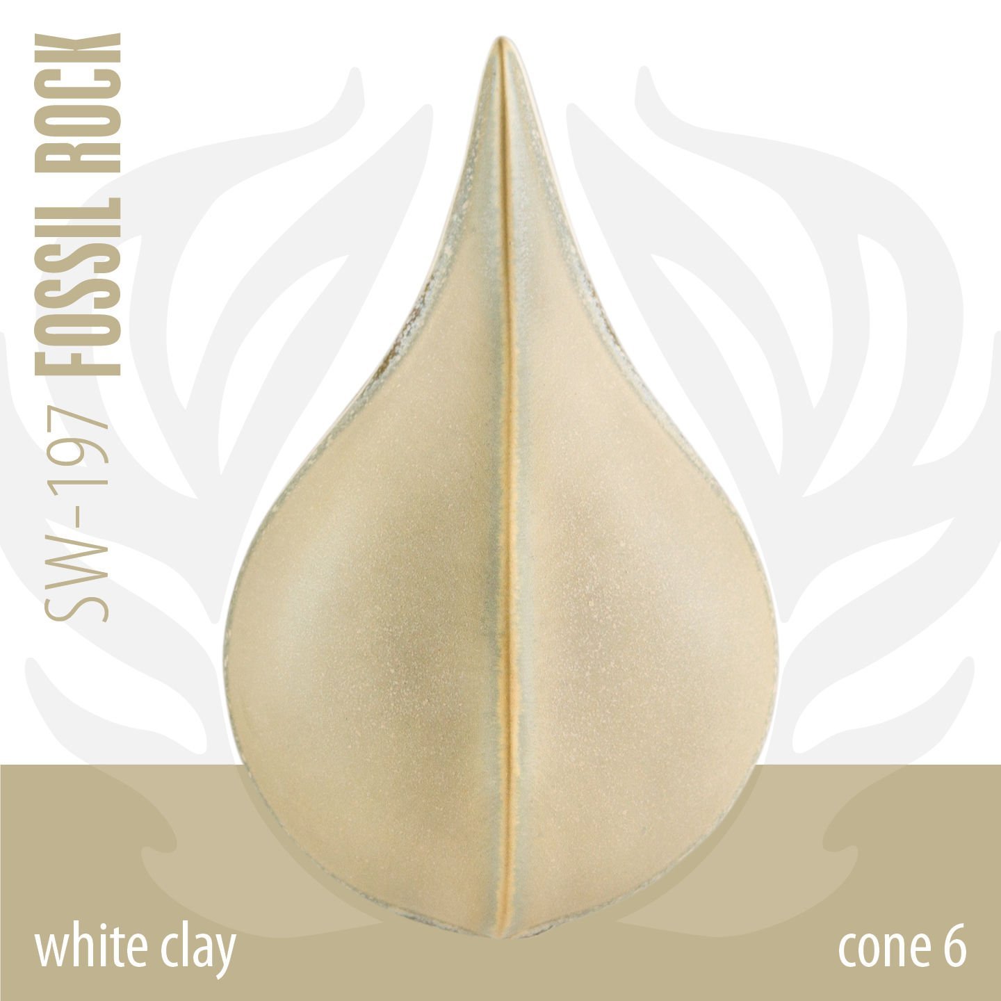 Cone 6 Oksidasyon 1222°C (ilk görsel): Fosil taşlarından ilham alan Fossil Rock, opak, bej tonlarında, mat bir sırdır ve dokulu yüzeylerde kırılmalar gösterir.