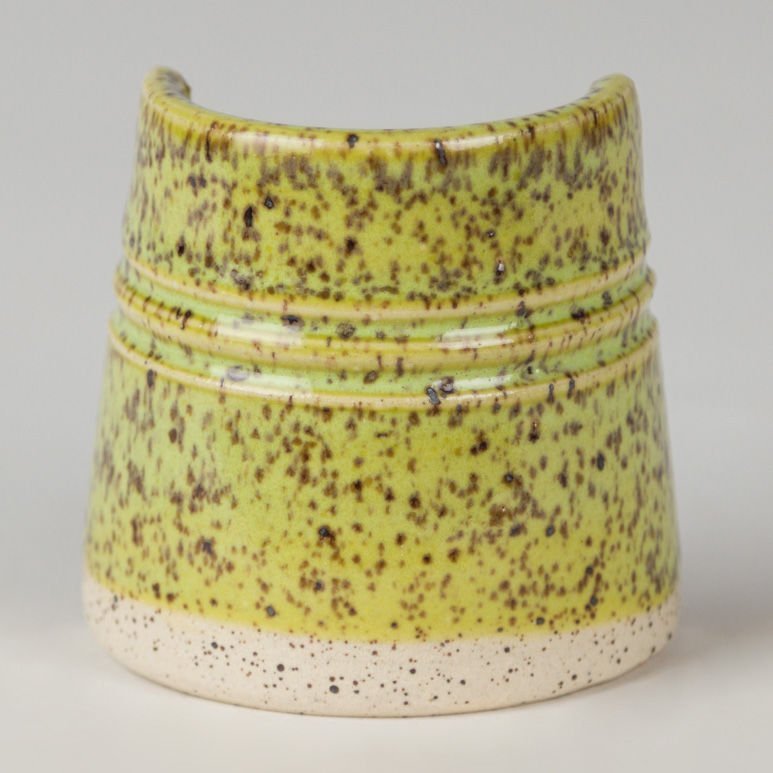 Cone 6 Oksidasyon 1222°C (ilk görsel): Green Opal, pişirildiğinde canlı bir fıstık yeşili parlaklık oluşturur. İnce uygulamalar yarı opak sarı-yeşil tonlar verir; kalın uygulamalarda yeşil “floating” oluşur.